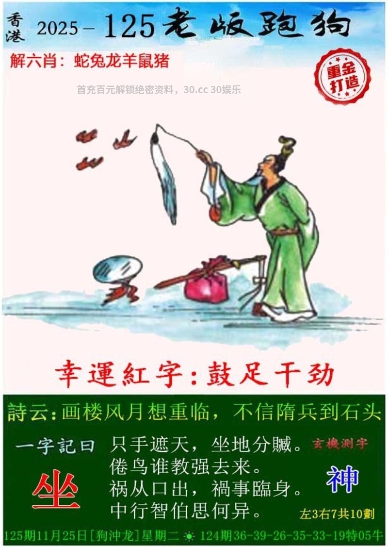 125期:六肖【鸡龙狗猴鼠羊】开:狗08中